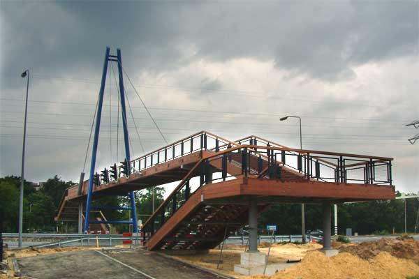 Zowel de pylonen als de brugsecties kunnen in staal en/of hout worden uitgevoerd. De brugsecties zijn ook mogelijk in composiet. Voor de brugsecties kunt u bijv. de liggerbrug of vakwerkbrug gebruiken.