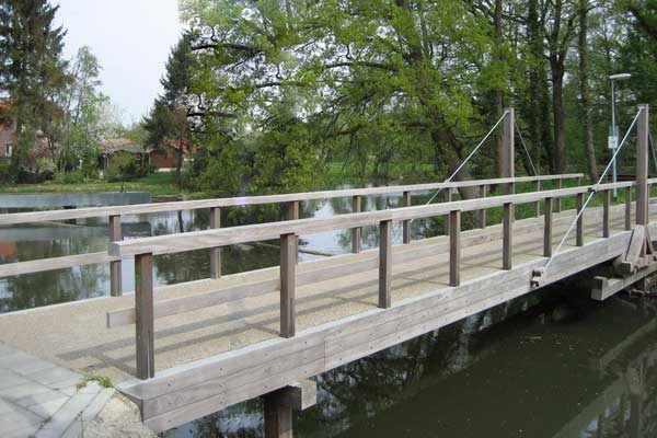 De brug kan worden voorzien van een dek van hout, kunststof of staal.