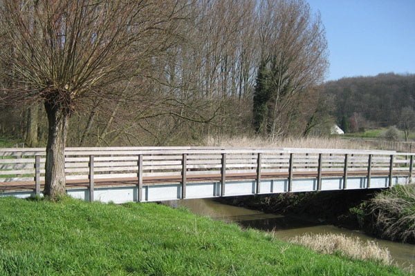 De brug kan worden voorzien van een dek van hout, kunststof of staal.